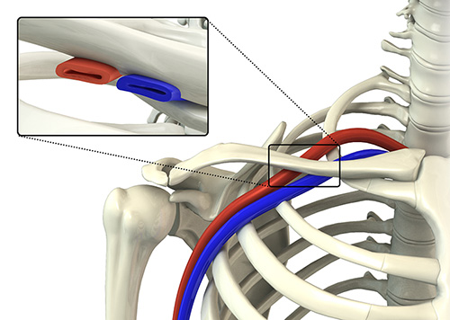 - Compression of the subclavian artery or subclavian vein on the side of the throat or upper chest